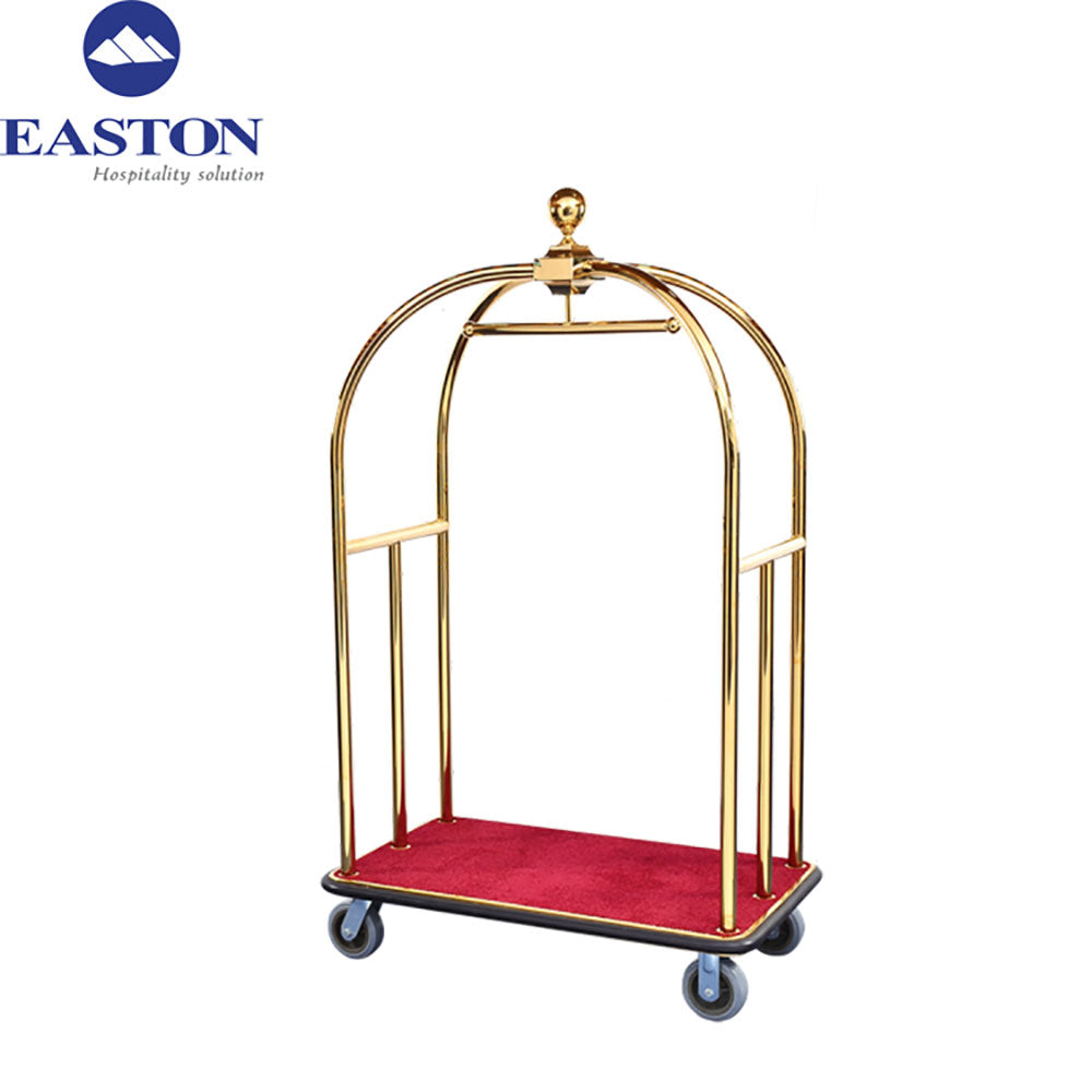Carucior hotelier din inox gold chrome cu covoras rosu, inaltime 1.800 mm