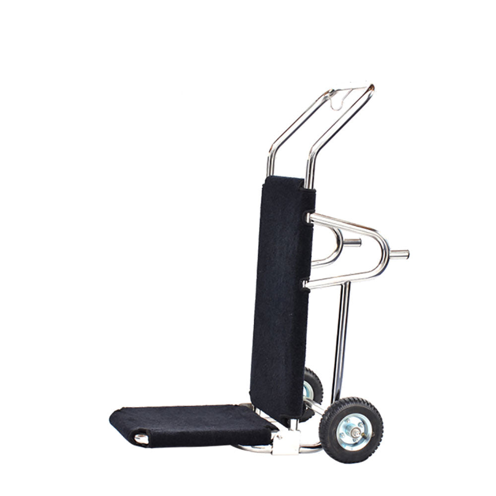 Carucior versatil, cadru din otel inoxidabil cu finisaj lustruit si sezut cu covoras negru remarcabil. Echipat cu 2 roti pneumatice de 8? si mecanism pliabil.