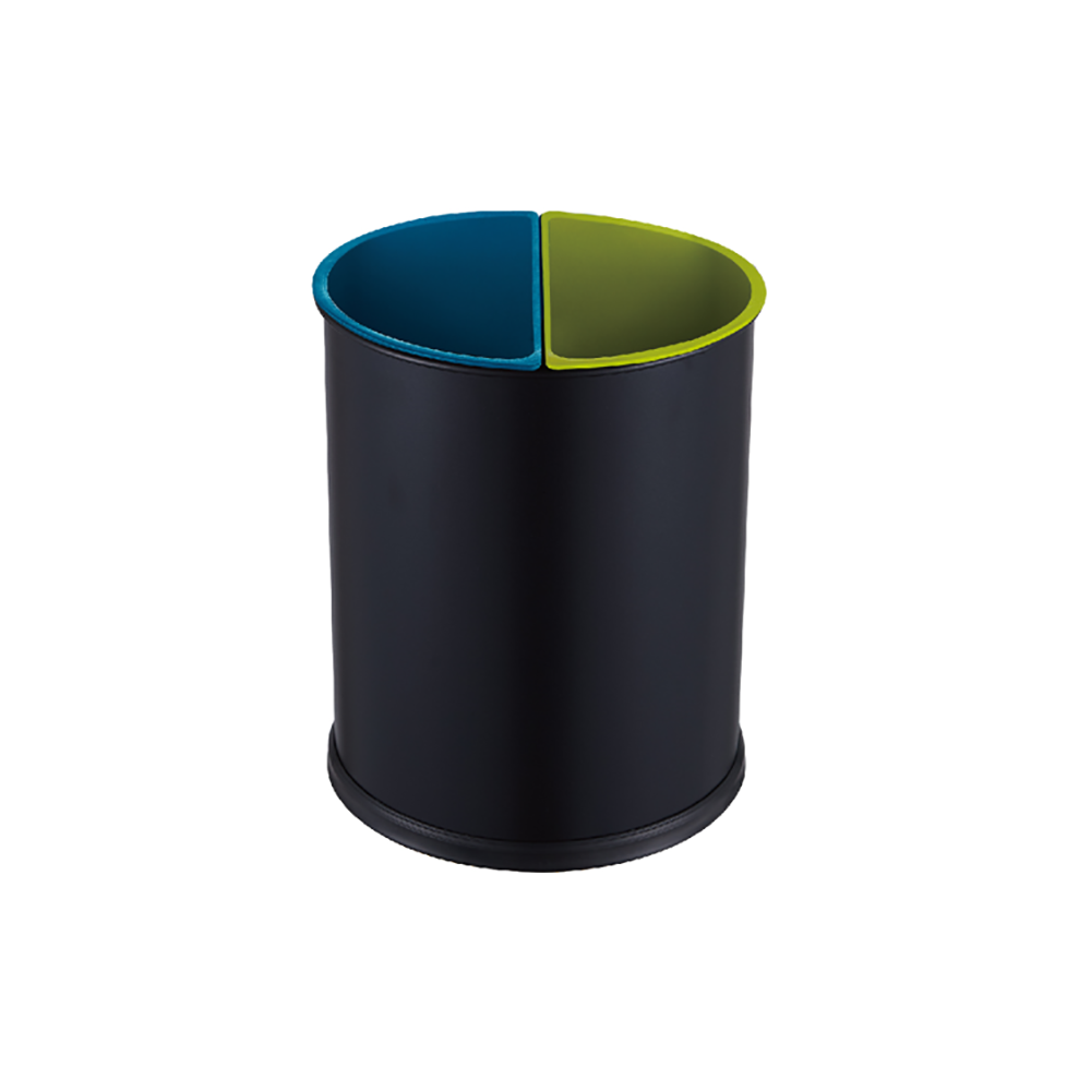 Acest cos de gunoi rotund cu doua compartimente imbina rezistenta si functionalitatea, oferind o solutie practica pentru sortarea deseurilor. Constructia metalica cu finisaj pulbere confera durabilitate, iar linerul interior impermeabil asigura protectie impotriva murdariei si umezelii.
