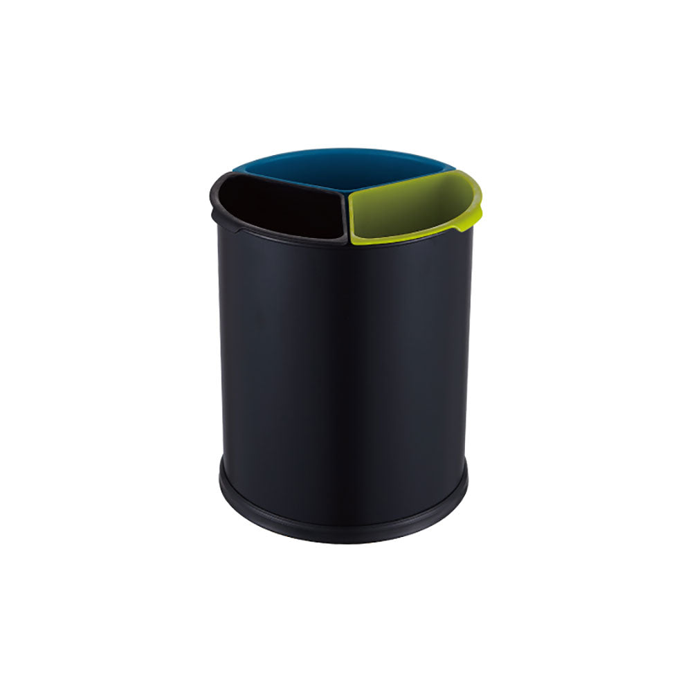 Acest cos de gunoi rotund cu trei sectiuni ofera o solutie completa de sortare a deseurilor, combinand durabilitatea materialelor cu un aspect modern. Finisajul pulbere pe structura metalica si linerul detasabil impermeabil asigura o utilizare indelungata si simpla intretinere.