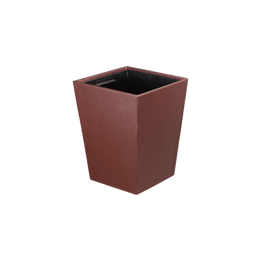 Cos cu exterior din leatherette maro si liner interior metalic cu strat de pulbere, rezistent la apa si foc. Design patrat si intretinere simpla.