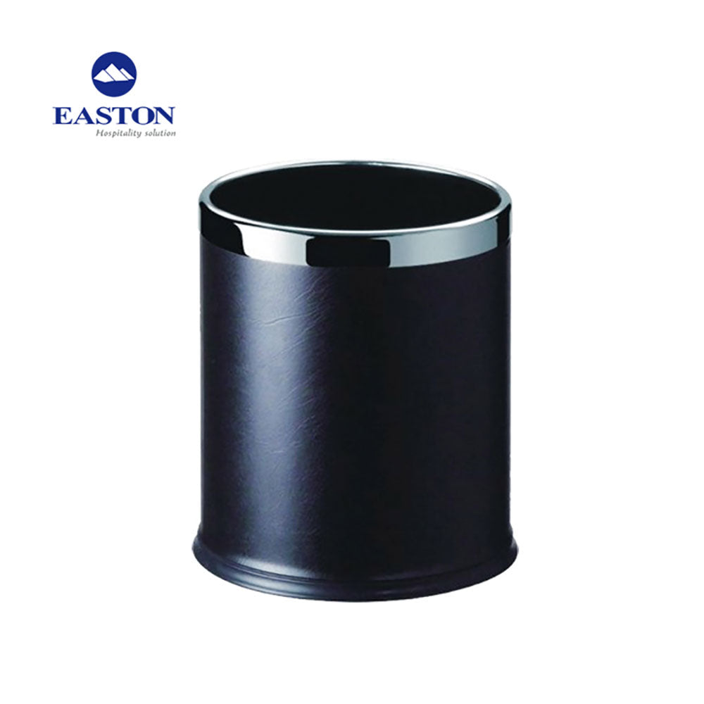 Cos compact rotund, corp acoperit cu leatherette negru si liner interior metalic durabil. Inel inox superior si baza antiderapanta pentru protectia podelei.