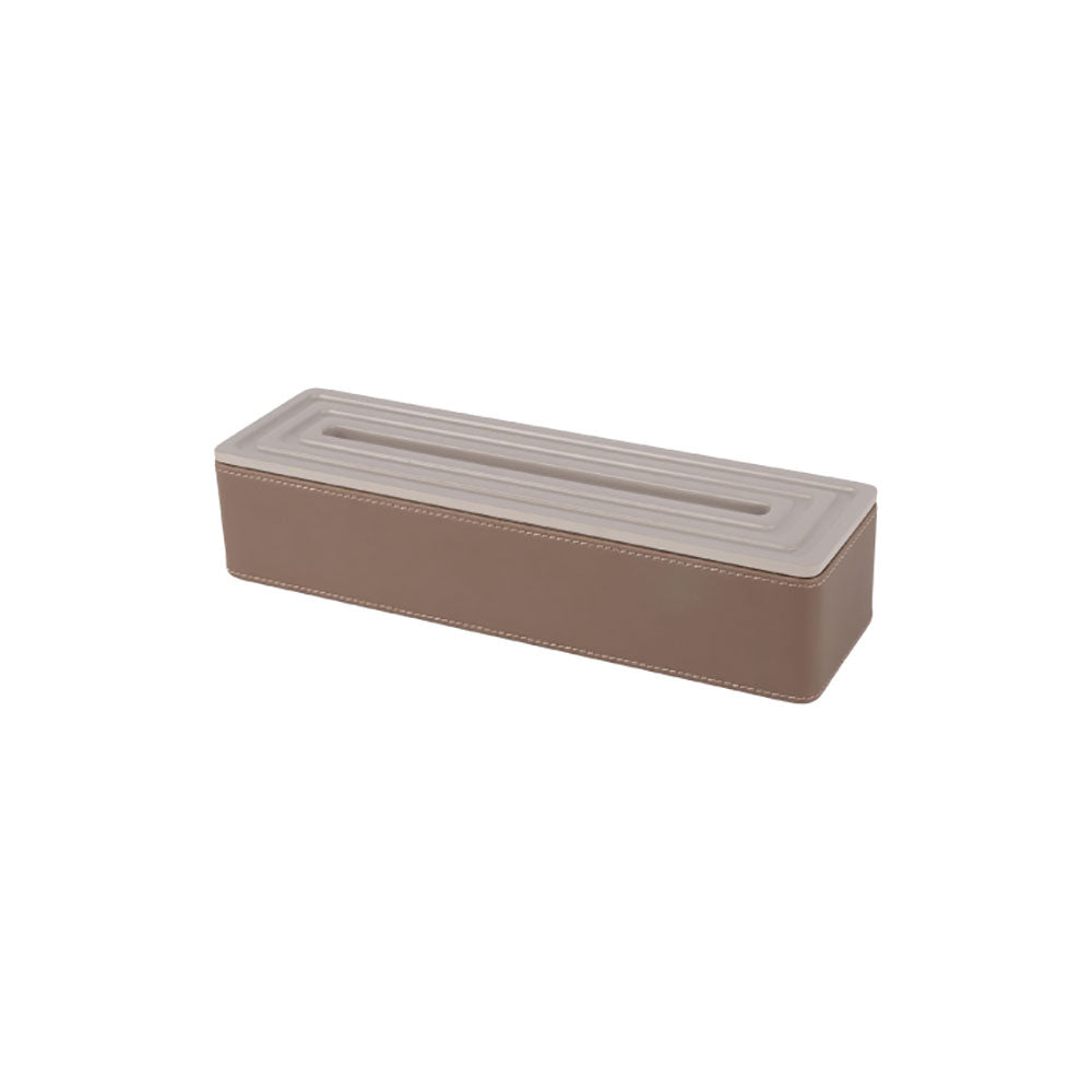 Cutie eleganta pentru organizarea rechizitelor, cu capac si finisaj maro. Dimensiuni: 280 × 85 × 60 mm. Ideala pentru pastrarea ordonata a pixurilor, creioanelor si notitelor.