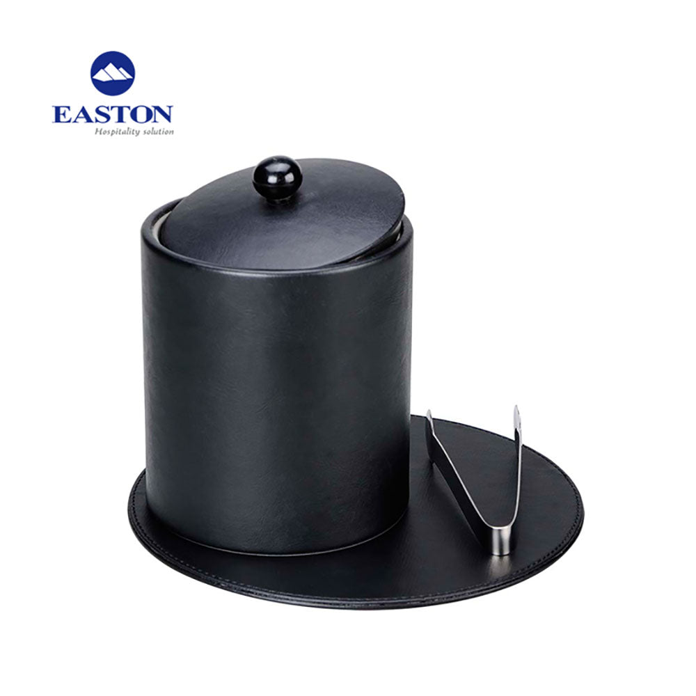 Recipient de gheata cu capacitate de 1.2 litri, design elegant monostrat, exterior imbracat in piele ecologica si insertie interioara din inox. Include cleste pentru gheata. Tavita de baza disponibila la cerere.