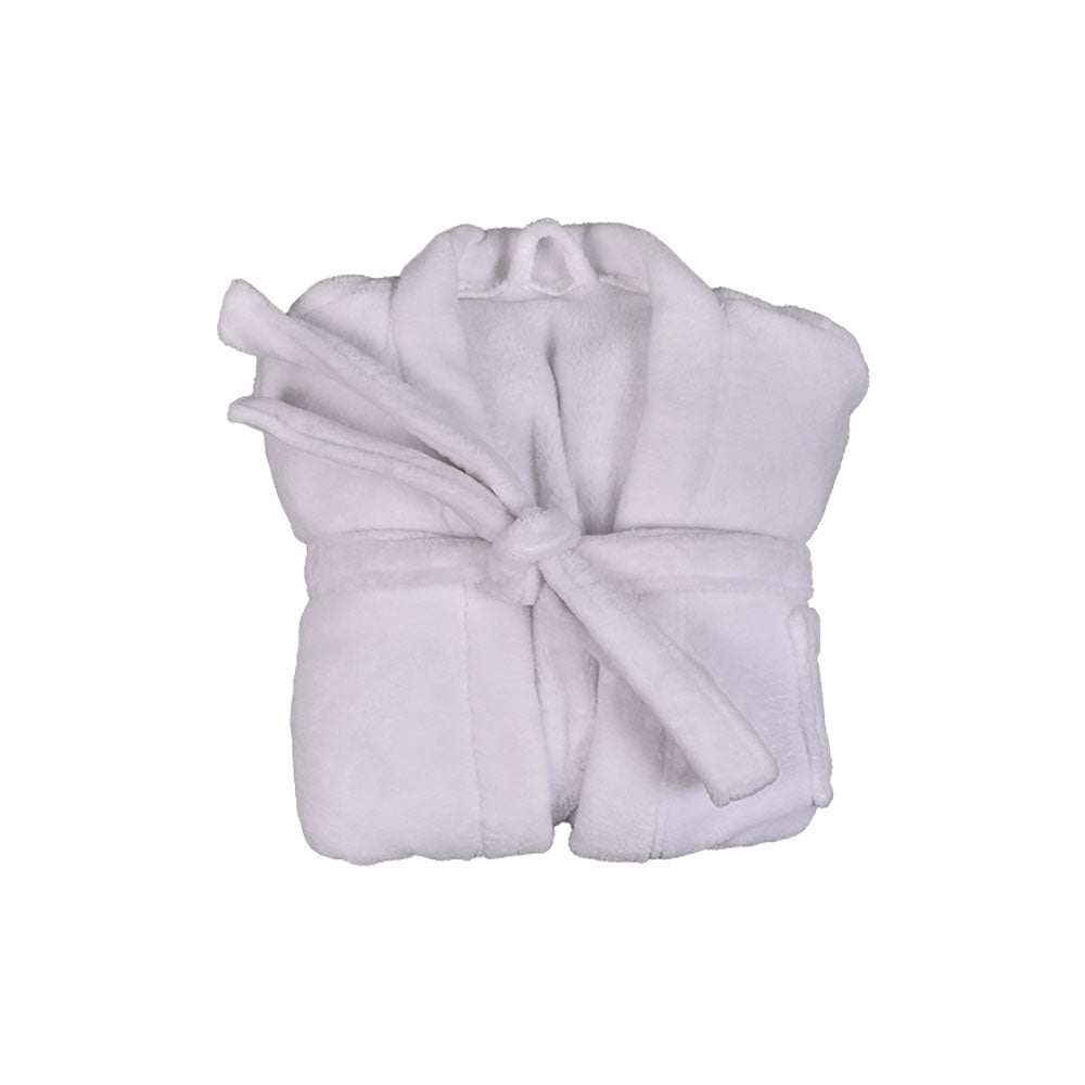 Halat din coral velvet 100% poliester, 260 GSM, fara buzunar la piept si eticheta logo lavabila. Culoare: alb.