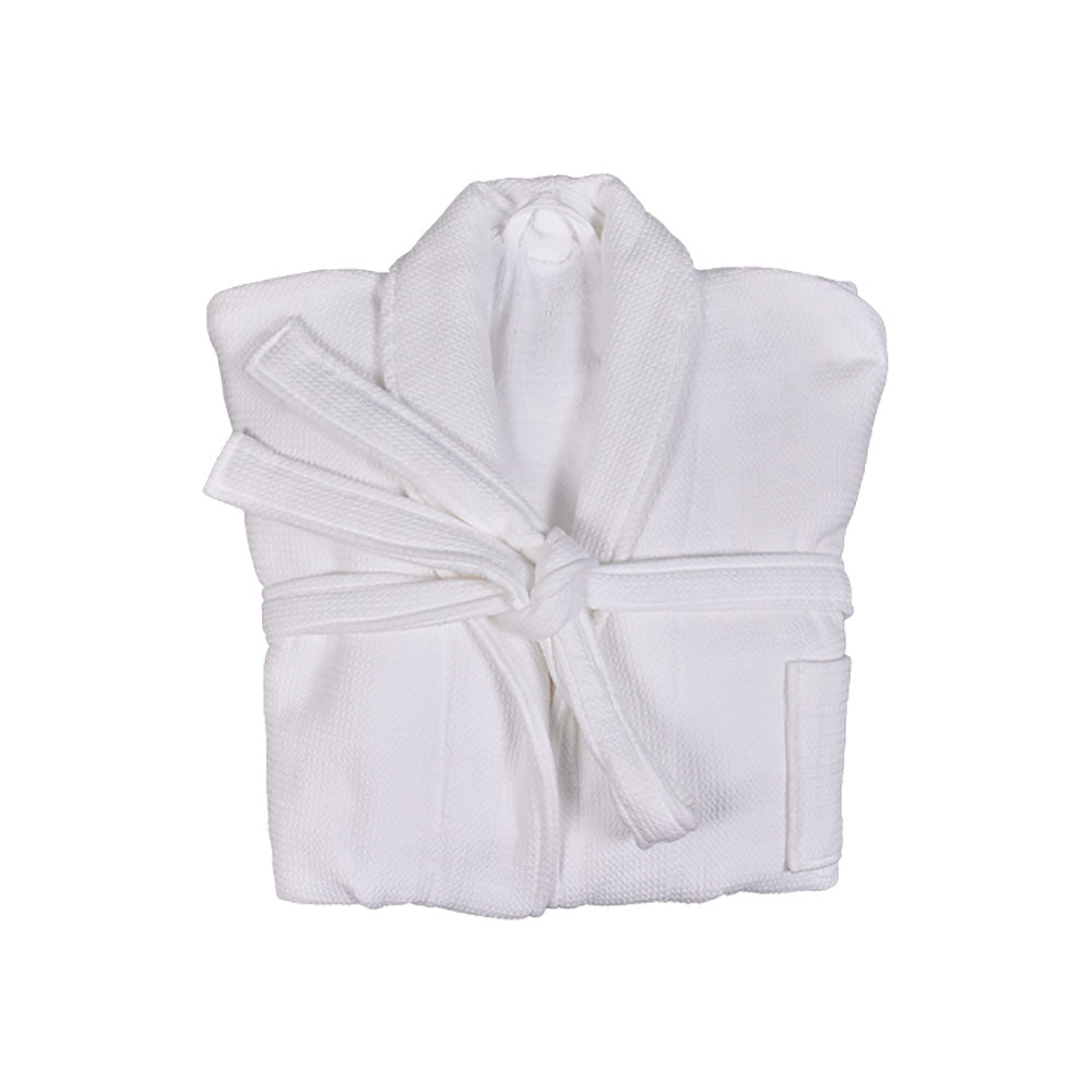 Halat elegant din bumbac 100%, 400 GSM, cu exterior in tesatura Waffle mare si interior Terry, fara buzunar la piept si guler sal. Culoare: alb.