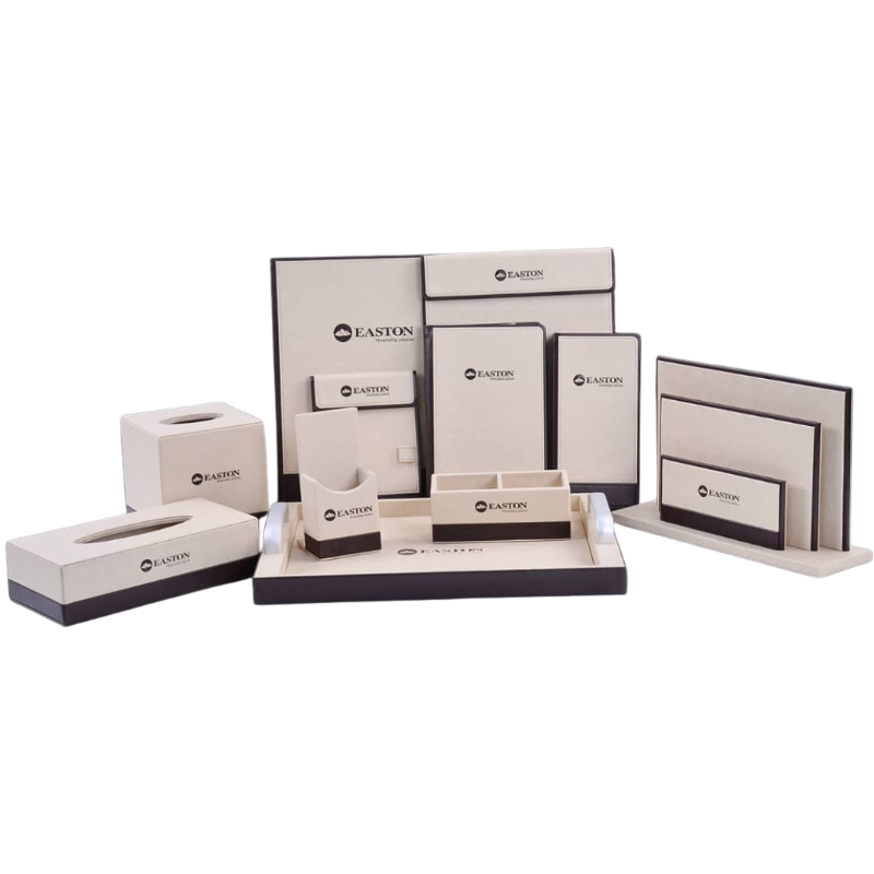 Kitul este ideal pentru organizarea zonelor de birou, minibar și spațiile dedicate informării oaspeților, contribuind la standardizarea echipării camerei și la îmbunătățirea experienței acestora.