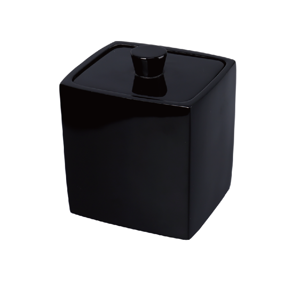 Un recipient rafinat, finisat negru lucios, menit sa pastreze sarurile de baie in cele mai bune conditii si sa aduca o nota de eleganta pe orice policioara sau blat de baie. Dimensiuni: 90 × 80 × 100 mm.