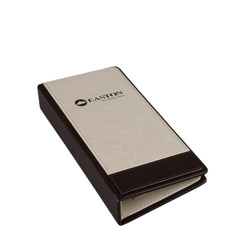 Suportul pentru telecomanda este conceput din piele ecologica de calitate premium, combinand suprafata ivory cu baza coffee. Designul vertical si compact pastreaza telecomanda intr-un singur loc, evitand riscul pierderii sau al aglomerarii suprafetelor. Este potrivit pentru camerele de hotel, birouri executive, lounge-uri si sali de conferinta.