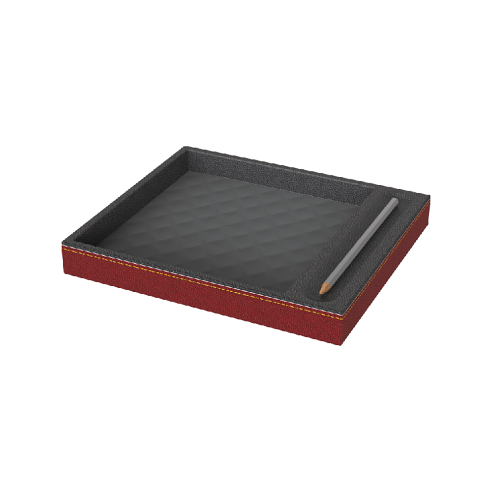 Acest suport pentru notite combina eleganta cu functionalitatea, oferind o solutie profesionala pentru organizarea blocnotesurilor si a instrumentelor de scris. Designul tricolor il face un accesoriu versatil, ideal pentru completarea dotarilor in spatii hoteliere de lux sau birouri executive.