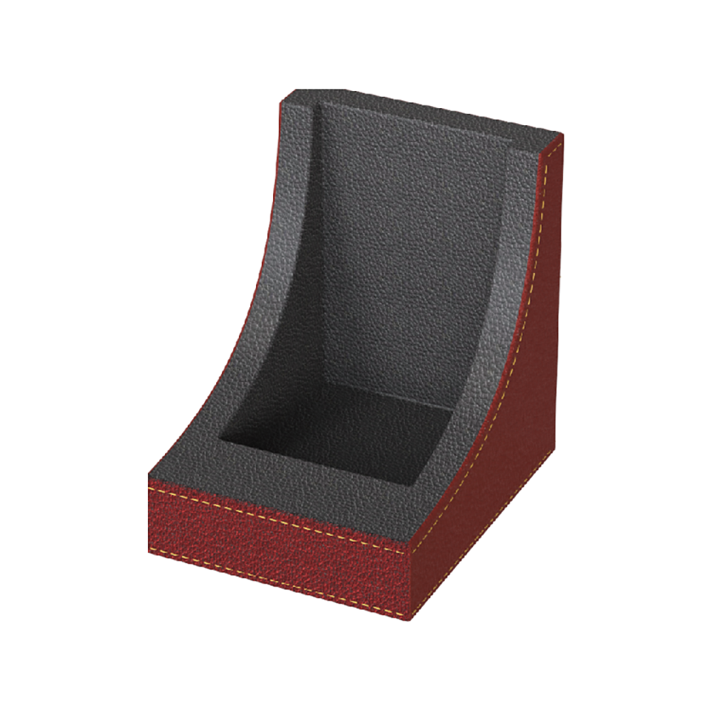 Suport vertical pentru telecomanda, cu forma ergonomica si design modern in negru, rosu si gri inchis. Dimensiuni: 80 × 92 × 94 mm.